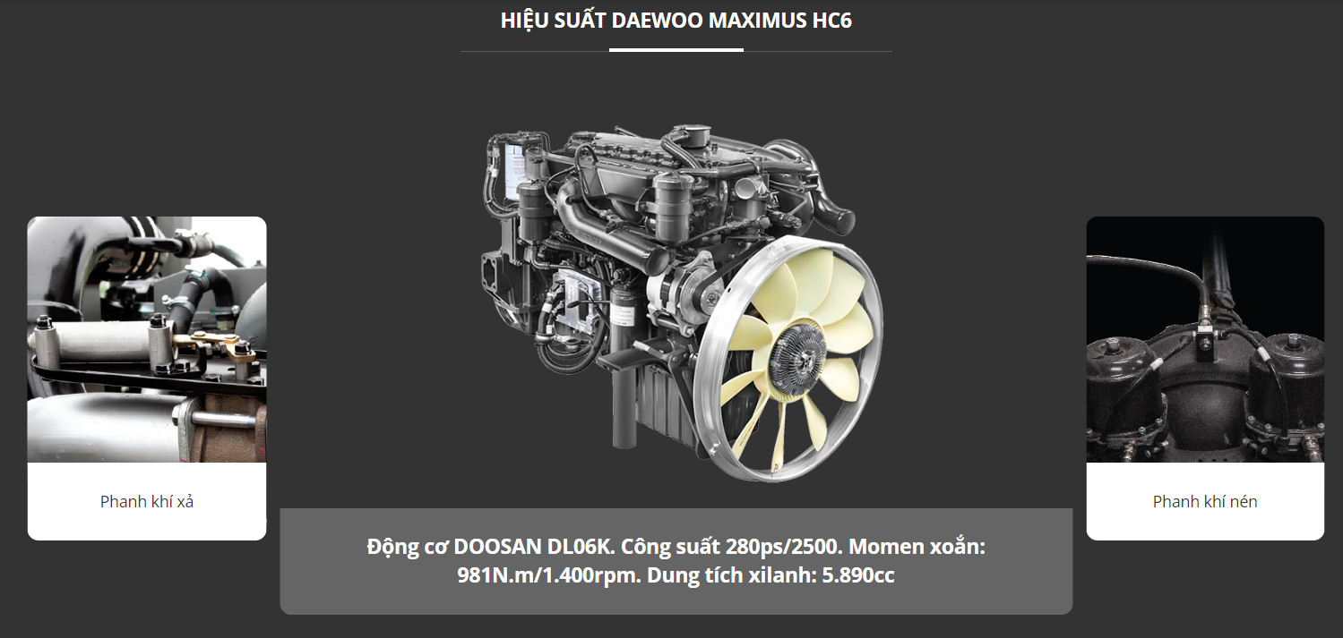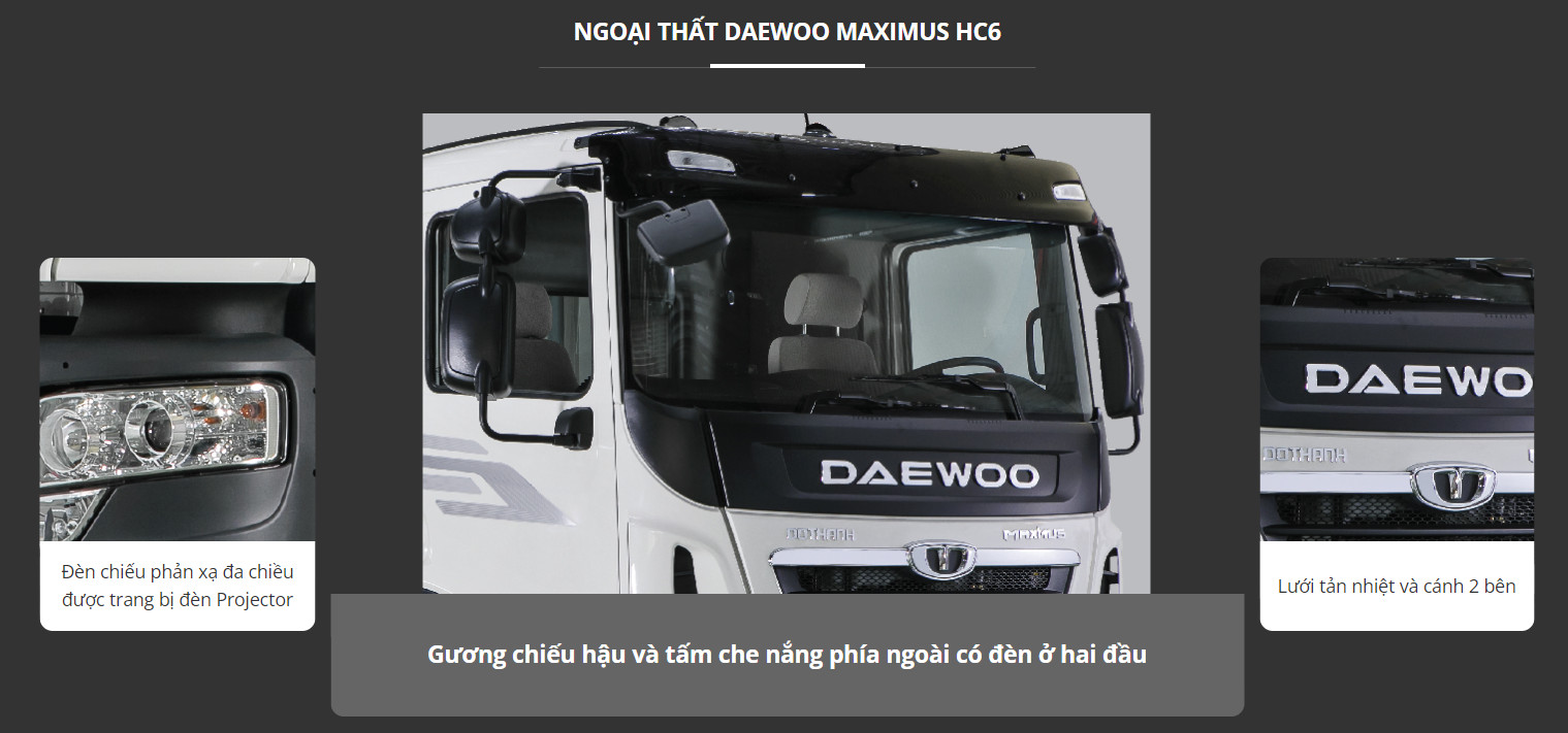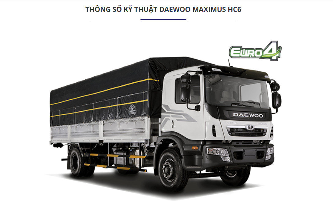Xe tải Daewoo Maximus HC6 - dòng xe tải thế hệ mới, tiêu chuẩn khí thải Euro 5, được lắp ráp trên dây chuyền hiện đại, linh kiện nhập khẩu đồng bộ từ Daewoo Hàn Quốc. Động cơ mạnh mẽ, hiệu suất cao, an toàn bền bỉ, tải trọng lớn, tiết kiệm nhiên liệu, thiết kế tiện nghi – hiện đại.